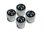 - Description: Black and silver with Mazda logo. Made from chrome plated finish ABS, our Valve Stem Caps have the Mazda logo beautifully printed under a clear doming to achieve a jewelry quality look and protect the logo for years to come. Set of 4.